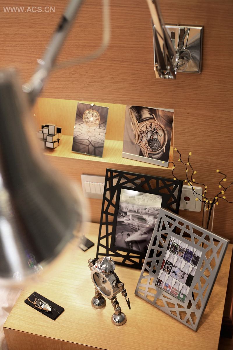 作为精装房的样板间不同于普通样板房,在硬装上无法自由的增加光效设计,设计容易流于呆板,对设计团队是一个相当大的挑战。因此,本案充分利用一切演绎机会,在硬装设计中增加灯光层次的基础上,通过自发光的家具(床,茶几和电视柜等)和固装衣柜等通体发光的定制设计增强灯光的层次,加强灯光的魅力,也是为了达到普通样板的正常光效。床下的感应夜灯设计不仅是对光效的补充,同时也满足了居住者的实际应用需求。钢琴漆家具起到反衬灯光的奇幻效果。