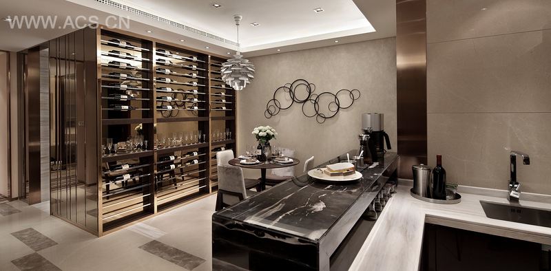 2、 餐厅背景酒柜及设计,满足就餐+品藏功能;