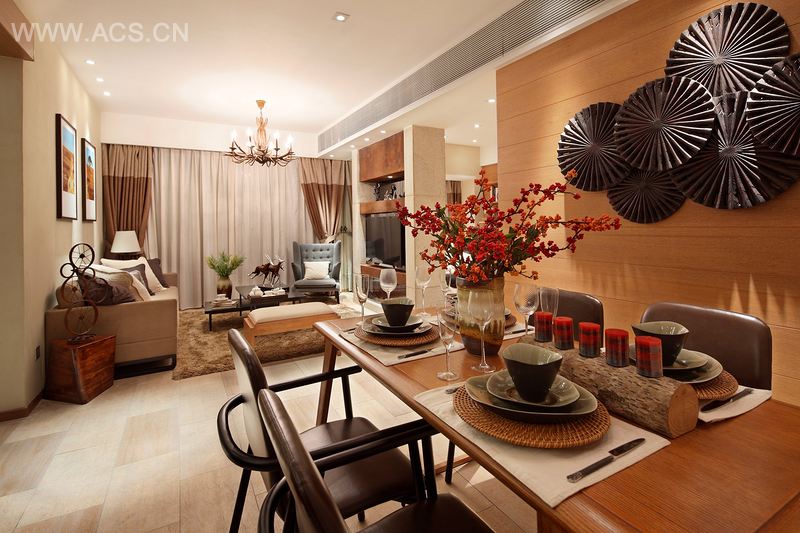 户型面积70m²,定位为带度假性质的二次置业房兼有投资性质,考虑到该样板房的定位,设计采用现代休闲度假风格,对公共空间的调整把握成为整个设计的亮点:通过各个空间的功能重叠性设计令使用面积达到90 m²的效果。