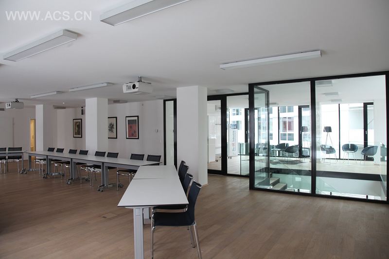 工业协会的三层楼是一个连通的空间,内部楼梯直通大型会议室。设计师再次采用大量透明度,让光线四方畅通,同时可眺望林茨市的地标,伯斯特林山。