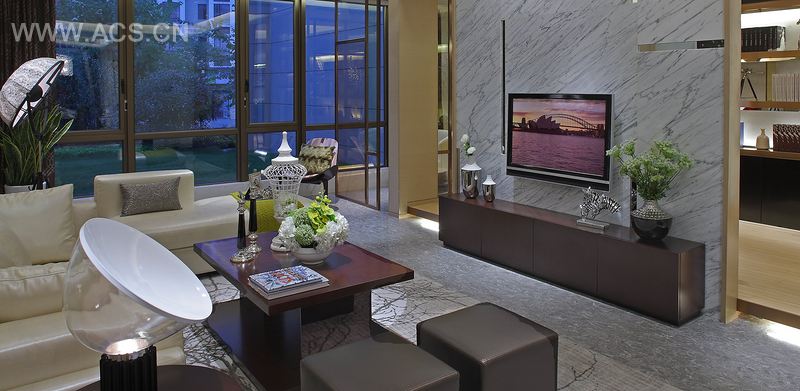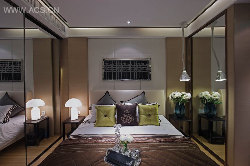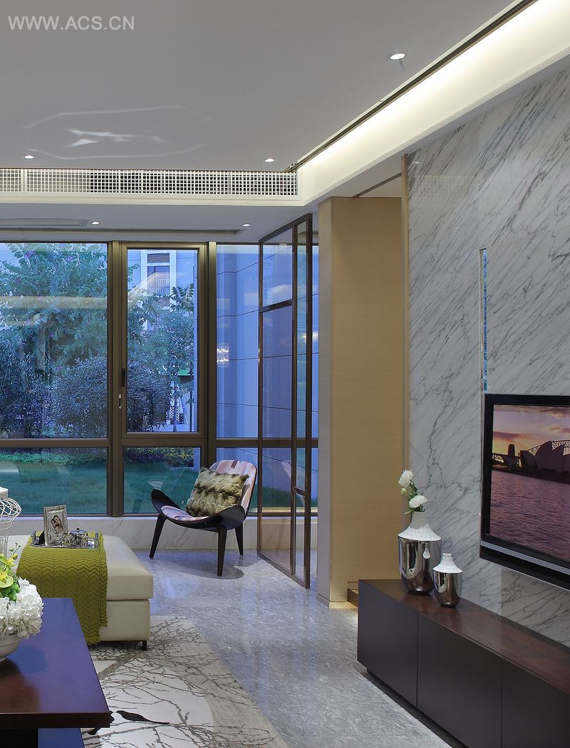 本案采用自然光,不仅在客厅设有整片的落地窗,餐厅、房间和浴室都各有一方窗户。这些窗户的设计可谓一箭双雕:一是引进室外的风光,户主通过窗户可以随意欣赏着庭院里绿意葱葱,拓展了室内视野;二是良好地采用自然光,室内光线十分通透,例如:客厅的落地窗与餐厅的窗户相对;房间的窗户与整片落地镜相对,光线十分地充足。