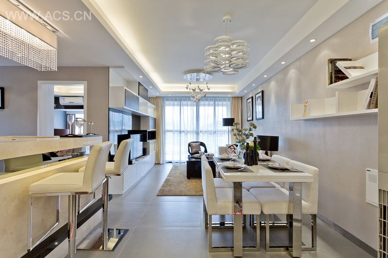 本案走简约风格,空间功能分区简单而紧凑。用色上以白色为主色调,配以适当的黑色。配饰上,摒弃浮夸,摆脱拘束,每个配饰都摆在其最合适的位置上,丰富了室内的细节,而丝毫不显得张扬。
