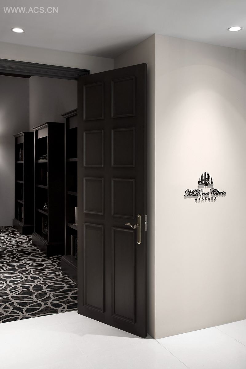 这间心理咨询机构的室内设计意图在这个空间中表达它的机构理念。带有线缝的“门”勾勒出了墙壁的线条,但它并不能打开,而最“寻常”的墙面却能像门一样打开,将人们带进一个新的空间。打开滑动式的书柜能进入咨询室。走廊末处的门面向窗户,通过控制门口的开与关可以让光线照射进来。