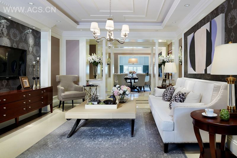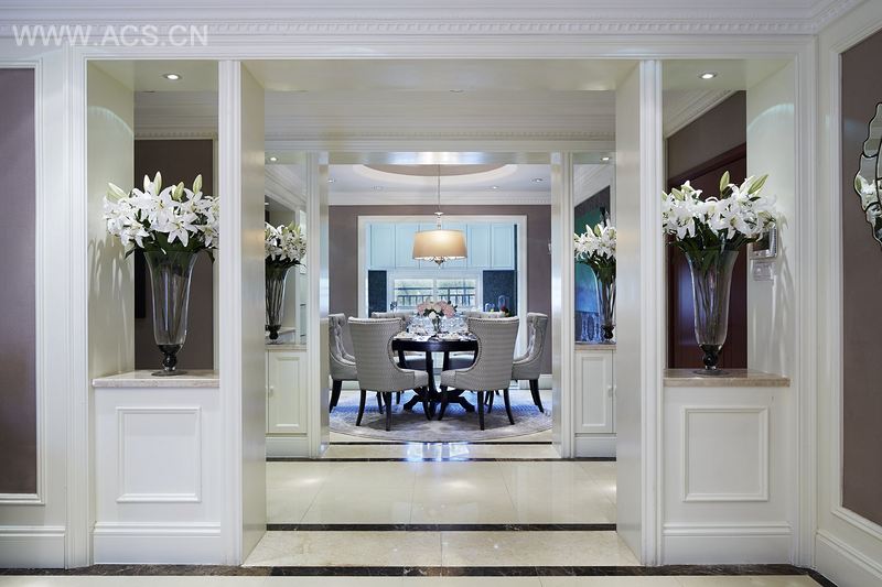 整个空间将浪漫简约风格自然的流露在细节的每一处,每一根线条,每一个饰品都是设计师精心安排的,在设计上追求空间的连续性和形体变化的层次感中,让整体豁达大气,却不失精致与温和。进入空间舒适、愉悦的气氛使人感到心灵的彻底放松。似乎每一个元素都是为这个空间而生,完美融合成浪漫简约的室内空间。