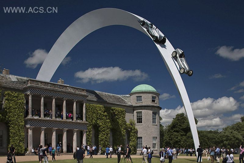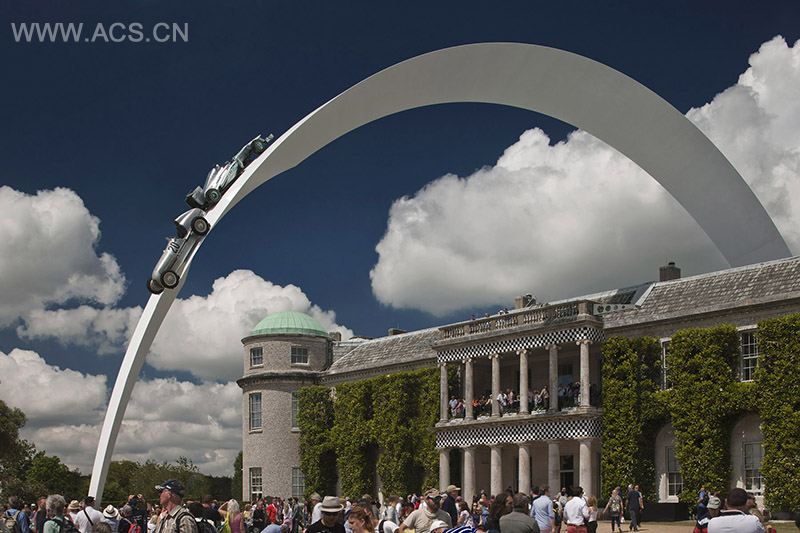 奔驰的赛车历史可追溯到1894年,现已跨越了三个世纪。第一届于法国举行,在法国崎岖的道路上,Daimler发动机为第一届世界冠军的诞生助了一臂之力。今年古德伍德速度节的赛车雕塑恰合时宜地展现了跨越120年的恢弘历史。这个钢雕塑从古德伍德之家鱼跃而出,比下方的建筑体高出26米、重160吨、长90米,由艺术家Gerry Judah进行设计。