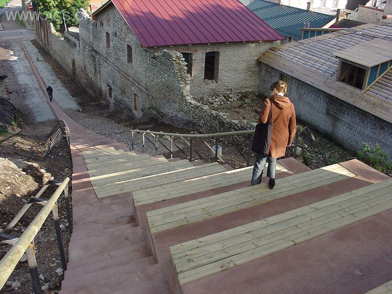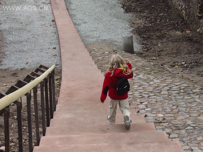 阶梯的起点很窄,阶梯上方还专门为孩童设计了小台阶。第一个台阶高度仅3mm,接下来的每一步台阶都比前一步台阶略高、略宽和略深。一路向上行走,会发现台阶越来越大,最后一步甚至达到0.8m高、1.6米深。攀爬阶梯需要耗费大量的体力。