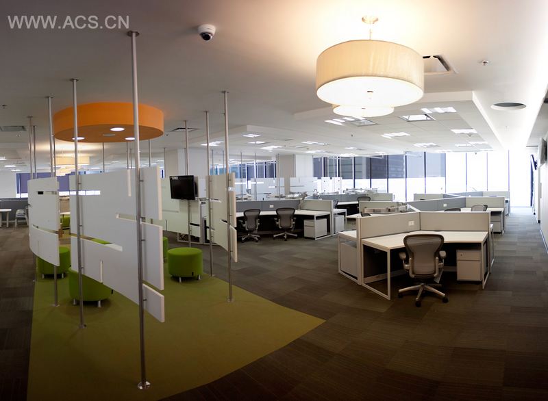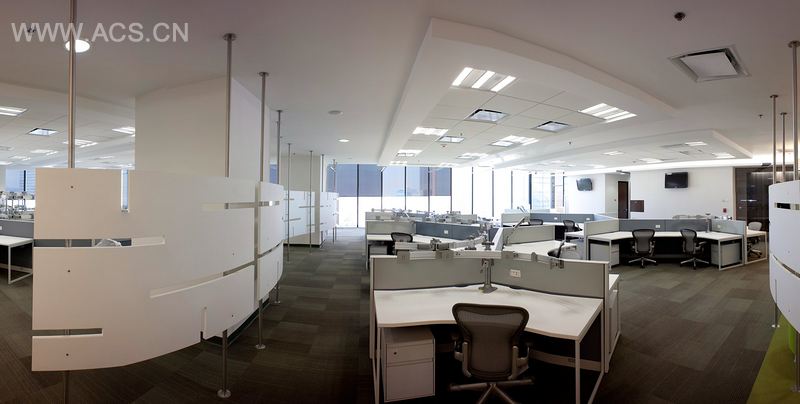 标准楼层包含配备了视听设备的会客室、咖啡区、印刷区、配有荧幕的休闲集会地,使得楼层别具质感,增强团队互动和使用的灵活性。电梯厅的大理石、玻璃和天花板装饰营造出独特的空间,引领人们通过自动化入口,进入一个现代化的互动空间。一个开放的平面区尾端设有工作站和私人房间,使空间显得更宽广,四面而来的华美灯光增添了与外部的连通性。