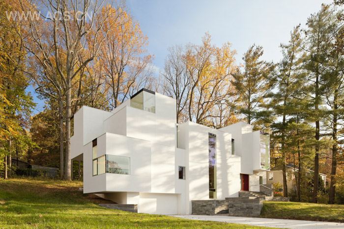 与表面齐平的不规则排布的玻璃,让建筑看起来更自由。