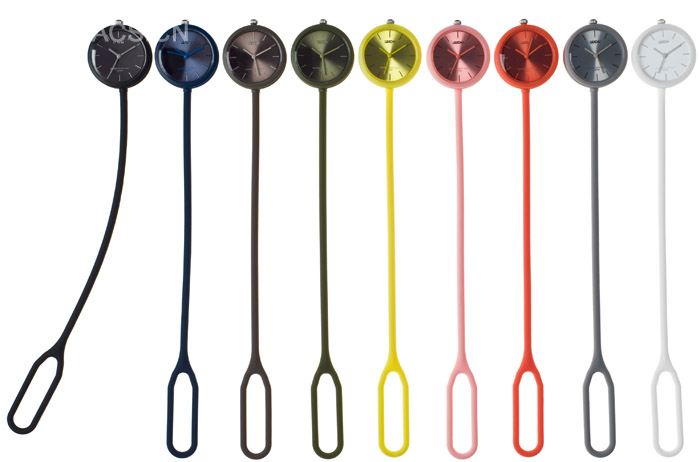 这款不同往常的精辟表设计由法国设计师Mathieu Lehanneur为老牌Lexon所设计,从怀表和摆钟汲取灵感,其将古老物品创新为一个现代男女皆宜的用具。无论是呆在手上,挂在腰间,吊在包上都十足的可爱。具有吸引力的外型,亲和力的材料还有那多种可选的色彩,都让这款表潮味十足。时间,只是其中一个功能罢了。