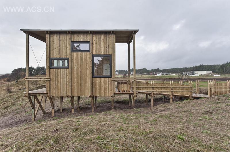 该项目的最突出的设计理念就是创造一个引人注目的刚性结构,和利斯塔自然环境的荒凉形成一个强烈的对比。该建筑在这个复杂而不均衡的景观上延伸出一条长长的直线,一条由木材搭建的小径蜿蜒60米,一端通向一条乡村小路,另一端连接着我们搭建的小木屋。这样在小木屋里就可以享受周围美丽的景色。