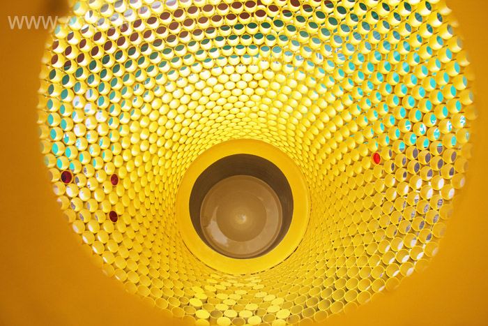 我们不希望只是简单地复制一个灯泡而就此打住,我希望它有更丰富的层次。所以通过体量,颜色,夜晚梦幻斑斓的灯光和与人更亲近的接触上我们做了精心的设计。最后如同大家所见,它不单外表是一个“好看”的灯泡,它还是一个可以进入其内部的炫酷空间,里与外完全是两个不同的视觉关系,特别是内部空间能给人带来极强的视觉与身体体验的刺激。