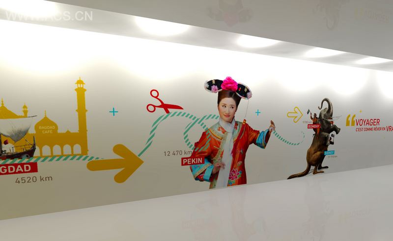 Designing a communication territory for Terminal 3 "from Lyon St-Exupéry Airport. One of the challenges of this project was the decoration of the connecting gallery. The goal is to create a pleasant, reassuring and entertaining to lessen the perceived duration of the course (250 meters).
