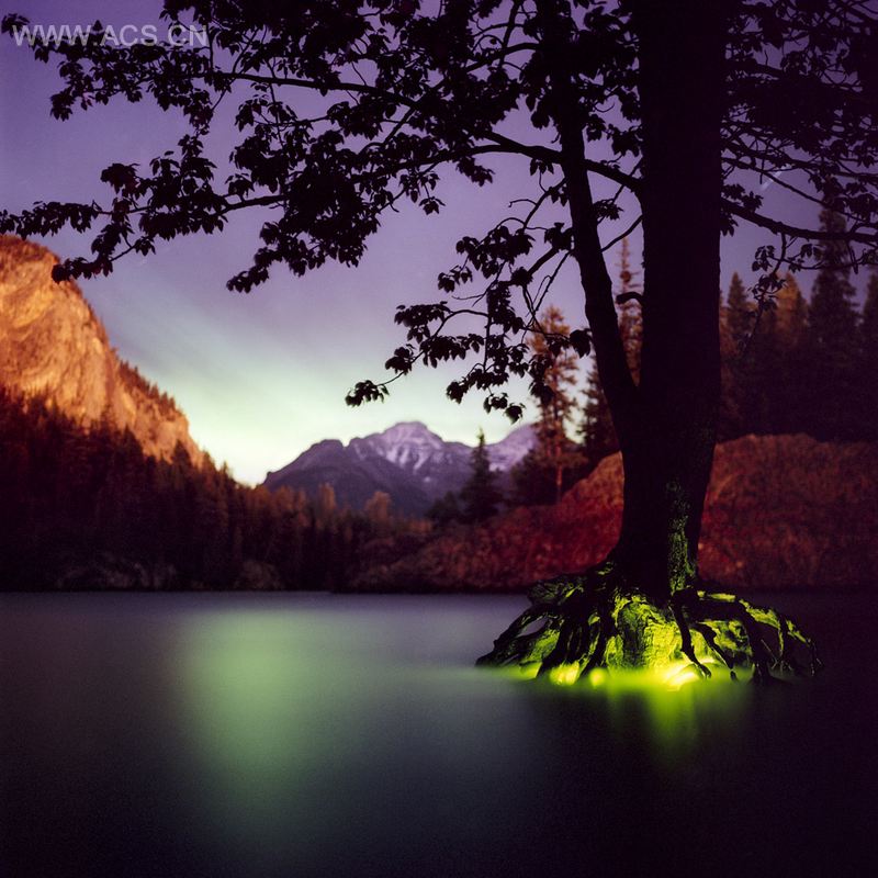 Barry Underwood得益于早期的戏剧训练,摄影经验与建筑经历,他探索北美各处风景,在面对一片风景时总能沉浸其中,然后再回游出来,接着用LED灯与发光材料进行游刃有余的创作,制造出抽象而如梦境般的图景。