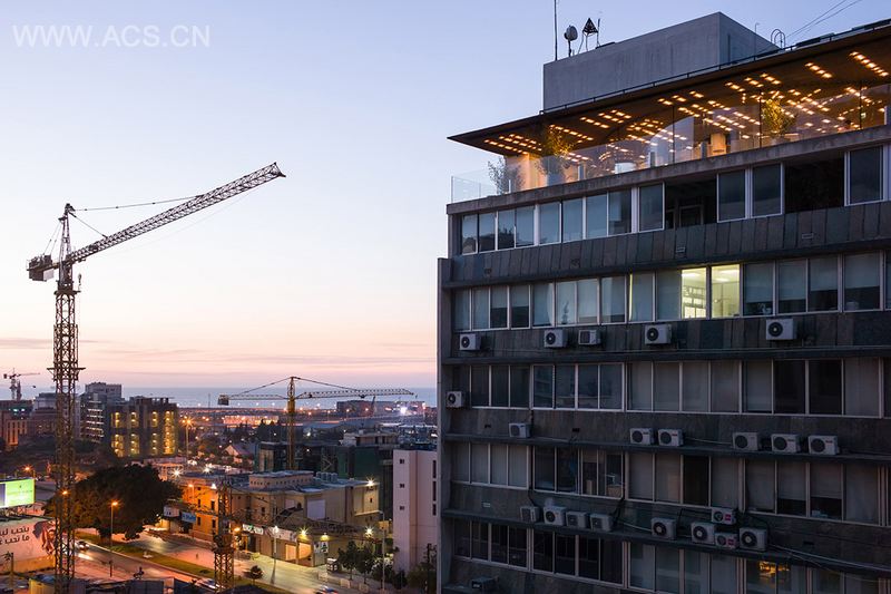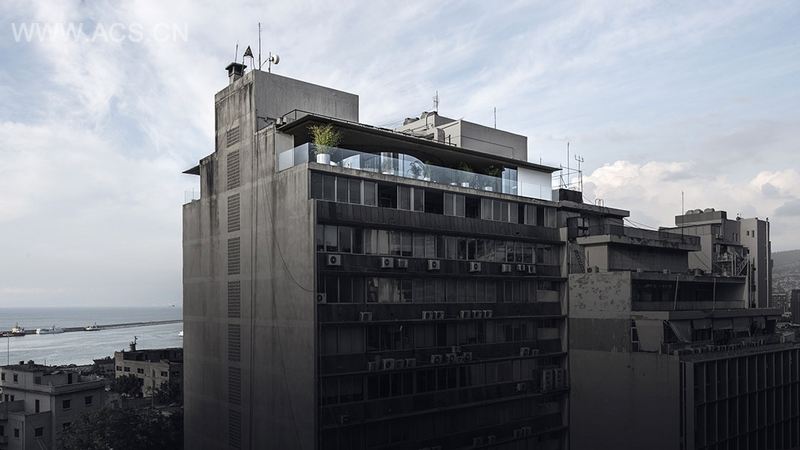 这家餐厅酒吧是贝鲁特Pasteur街道上一幢写字楼的简单玻璃顶层。在这里可以观赏到城市全景、地中海和贝鲁特港口。酒吧顶部除了现有的混凝土板,还新增了覆盖整个区域的悬臂式金属结构。悬臂的边缘很薄(2cm),全长25米,横贯整个立面和边角处。