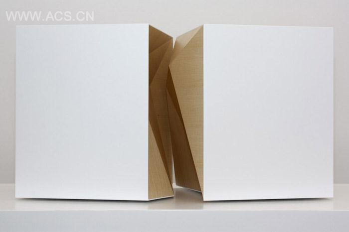 可以当成一对桌子或者椅子使用。但他们组合时,形成一个简单的白色形状,当你将他们打开时,可以看见里面的有机结构。设计师努力创造内涵,通过直线和木纹,让视觉更具深度。家具在私人厂做和公共场所都适合使用。并有各种组合形式。