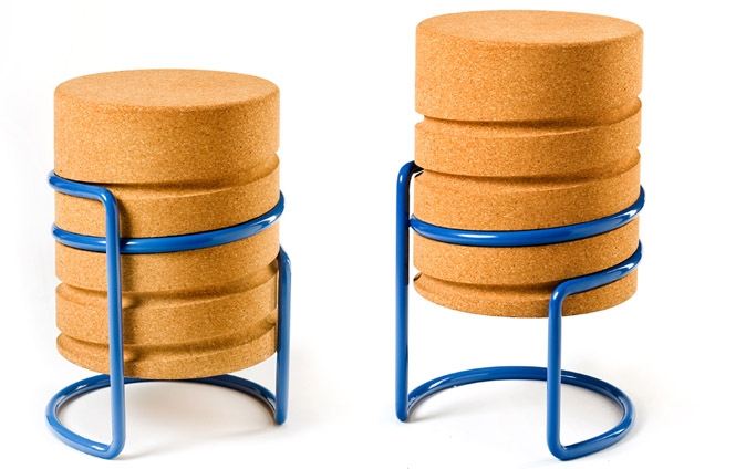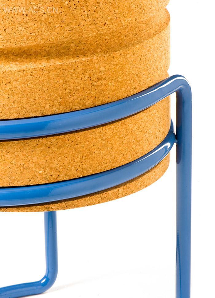 软木的坐凳拧在高质量的螺旋钢管上,形成有趣的对比。