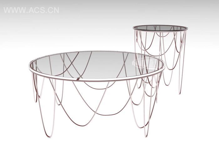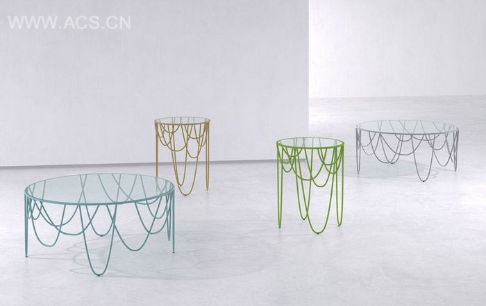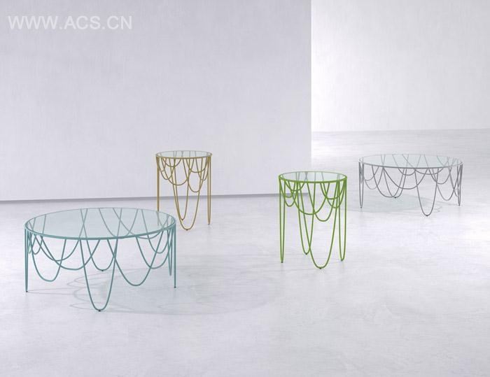 两个不同高度和半径的“帐帘”圆桌。设计鲜明醒目。