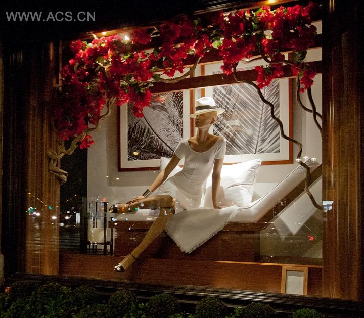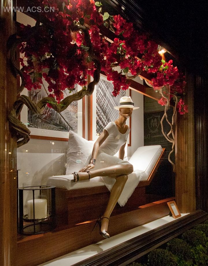 店面是一家欧式风格临街店,因此在橱窗展示中有很多的可塑性,橱窗的设计非常清晰的展示了产品,并对产品进行了搭配设计,非常直观的橱窗布置。