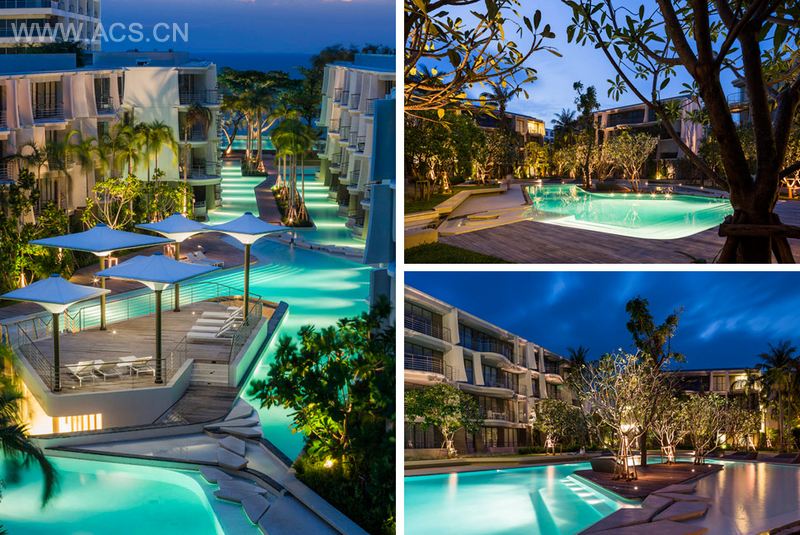 Sanitas Studio在2011年被委托为泰国七岩海滩附近的一个住宅区进行总体规划与景观设计。这个住宅小区中的13栋楼里,只有两栋楼直面海景,因为景观设计的任务就是在这13栋楼宇间打造出如海滩般的景观。