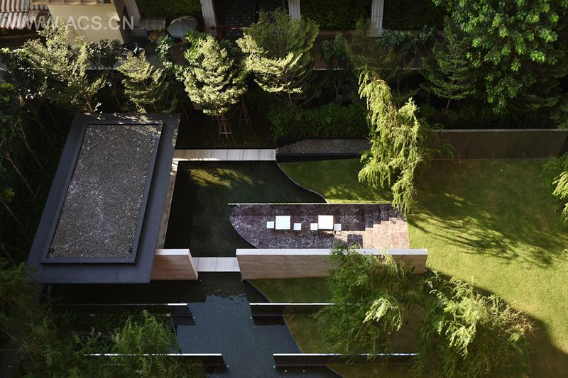 泰国景观事务所Sanitas Studio为曼谷某繁华地段的独栋高档住宅设计了景观。因为场地中只有一栋住宅楼,周围又是繁华的城市,为此景观设计师打造了系列立体景观,立体景观包括:地面景观(雕塑园),墙面景观,分层次的屋顶景观(5楼的泳池和27楼的空中花园)。