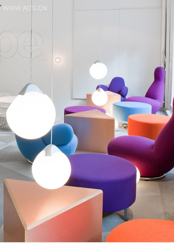 运用于软体家具造型,并启发整体色调的明快感,最后其LOGO本身也是用线灯拼成的彩云字体。