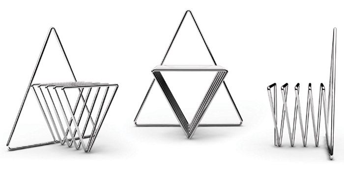 这是一款概念椅子,形体象征着春天累计的能量与潜力。由三角形单件金属管组成。坐垫部分有5个三角形形体,靠背是一个大三角形体。