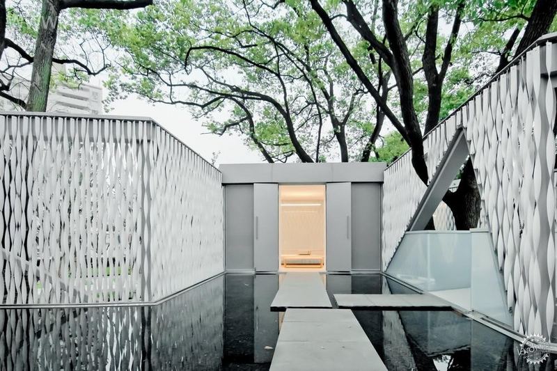 在这里,建筑的结构、材质,和大树的枝干、树叶交织在一起,一起营造出一个个纯净的室内外空间。这些空间(屋和院)在时间(路径)的组织下,共同实现了时空交汇的环境体验。这是一件由建筑和自然合作完成的作品。