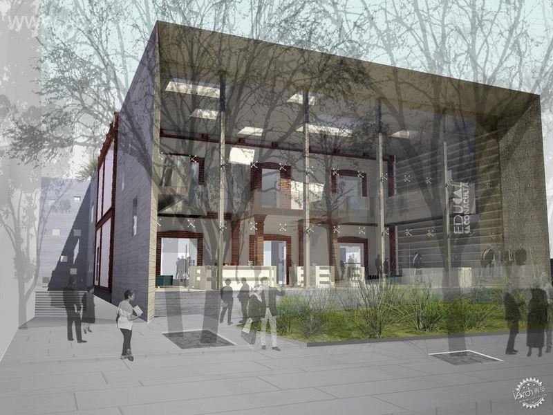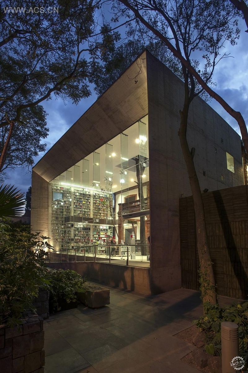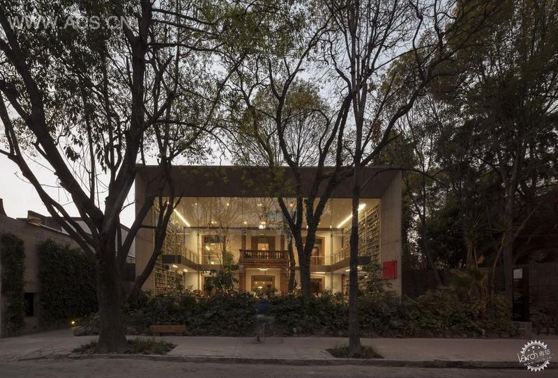 这座社区历史文化中心,是由一座20世纪早期建筑进行改建的。由一个开放的空间作为图书馆,而且也有空间进行文化活动。这座老房子的不可思议在于它不仅保持了当时的存在状态,而且现在仍能持续不断的改造,延续历史的轨迹,经由设计转换,由原来荒芜的空间场地,得到再一次的重新利用。设计师为该建筑创建了全新的临街外立面:整体浇筑的钢筋混凝土矩形结构,同墙体等高的玻璃幕墙。透过通透的玻璃幕墙,站在街道上就可以看到琳琅满目的书籍,同样,外面翠绿的树木也通过巨大的方形玻璃窗映衬进来。从而使图书馆与自然界很好的融为一体。从外面来看,这座建筑就像是一座巨大的公共门厅,内部的书本摆放区,貌似一个可以迎接阳光的天井,原本的树木植被也同样被保留于馆内呼吸生长,搭配红砖的外露结构,迎合了建筑师希望的“开放透明感”。