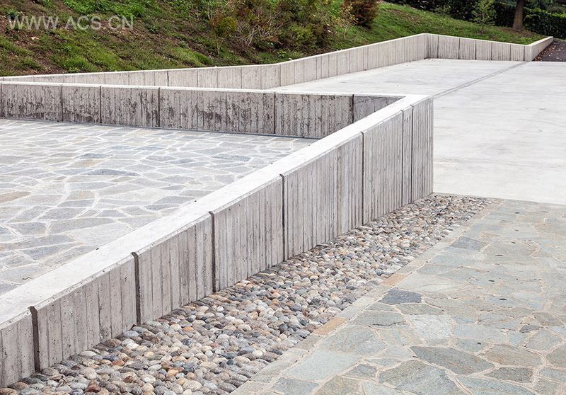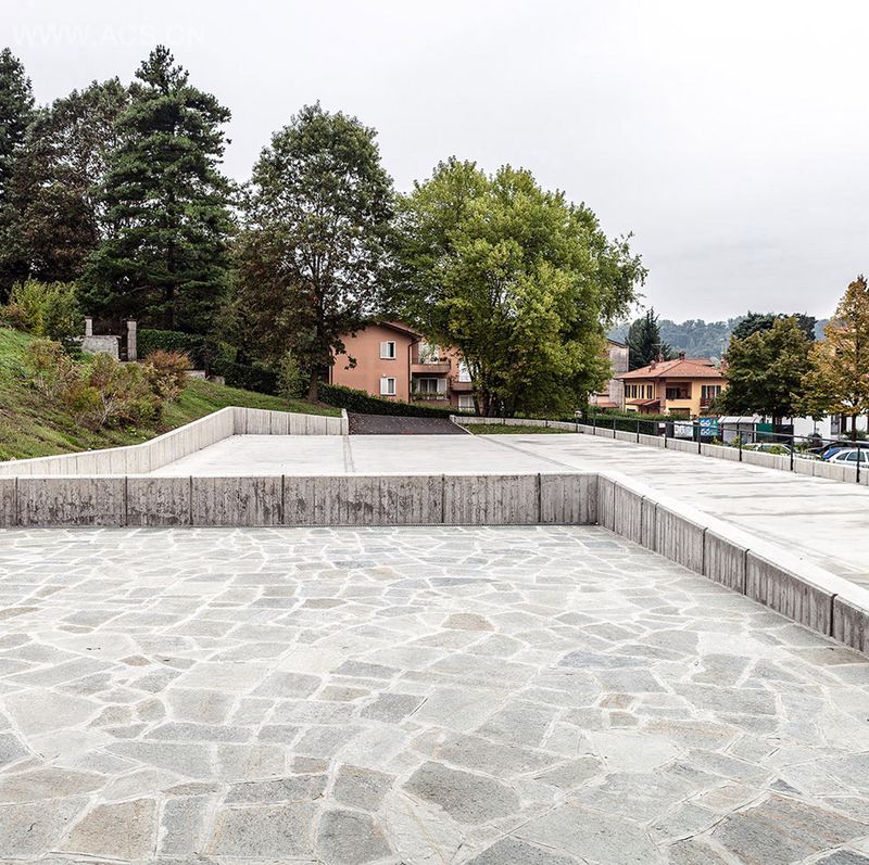 意大利贝加莫省阿达镇的一个新停车场。钢筋混凝土挡土墙,契合地形并尽可能的保持现状树木。