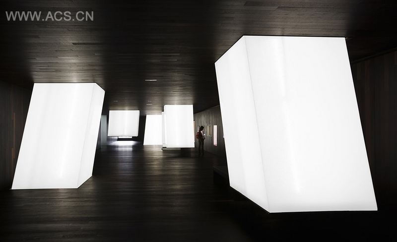 在永久性展览厅里,表面的墙已经发暗,木地板和天花板也几乎变黑。这个建筑让我们感受到时间的流逝,和那一块块筑造起历史厚墙的土壤。但在这些黑色之间穿插着白色的釉面棱镜,环绕在展品周围,将屋顶光线引入内部。棱镜中嵌入展品的图案和描述信息,激发人们解读历史的兴趣。
