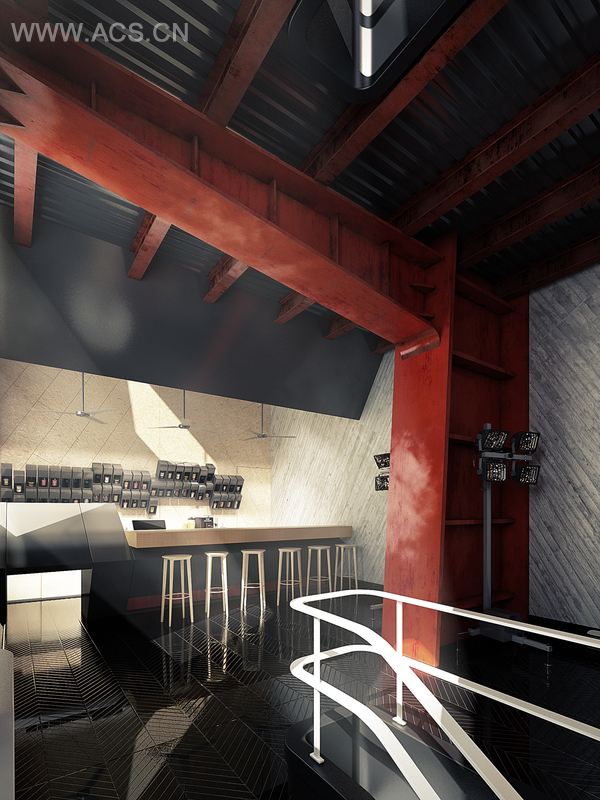 The worn out appearance of pillars and walls inspired me to create an interior full off constructional equipement, like lamps, nets, bars or even an elevator shell, in order to give this place an exceptional ambience.