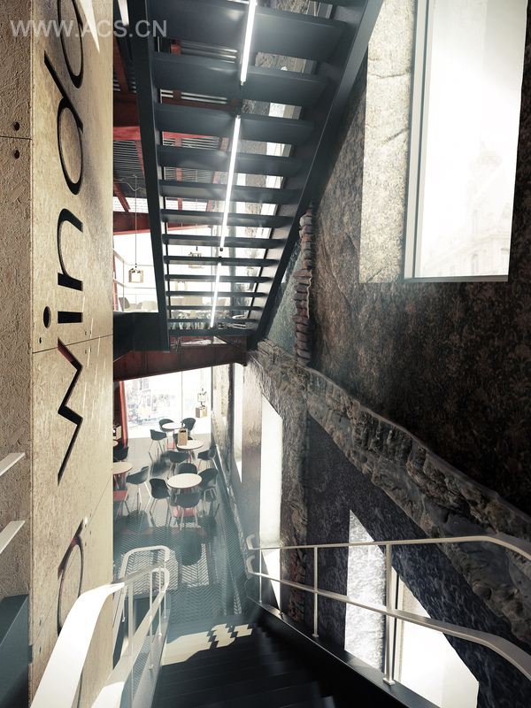 Project of the exterior and the interior of a pub in Lodz's city center. The architecture of the building was influenced by the Water House, the Berlin Tempelhof airport and many others, but mainly inspired by Lodz's typical architecture. The city is rich in XIX century buildings. Some are more beatiful then others, but almost all are in terrible condition. A decay on such a huge scale is upsetting but also, in a way, very inspiring.