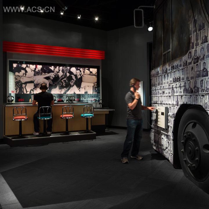 These light- and sound-controlled environments let visitors experience events like the Greensboro lunch counter sit-in through a binaural soundtrack of violent reactions to protesters and simulations of their stools being kicked.