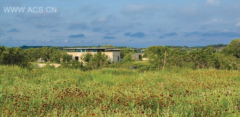 选址为德州中部希尔县八英亩山地,包括四个结构和半英里长车道,选址得当,与景观建筑相得益彰。自项目伊始,其目标就是尊重原生景观和地形,注意保护每一棵树和尽可能多的自然栖息地。