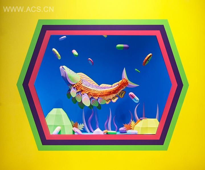 法国设计双人组zim & zou的lucie thomas和thibault zimmermann为2015米兰世博会制作了“可口的怪物”,适应了世博会的主题“滋养地球,润育生命(feeding the planet, energy for life)”。利用3D模型和复杂多和复杂多彩的切割纸片,zim & zou创造出了食肉向日葵、变异鱼、基因操作制成的转基因玉米,并赋予了它们生命,以此说明化学药品的应用和激进式的耕作方法是如何危害我们的健康的