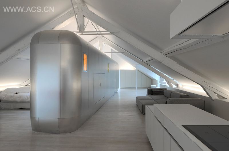 We were fortunate to have a committed and receptive client who was fascinated by precision engineering. This allowed us to apply our research into a loft's reinterpretation, and to integrate a technically advanced architectural . Our approach was, quite naturally, d on the client's profile rather than the site's historical nature – as it does not present any heritage value whatever.