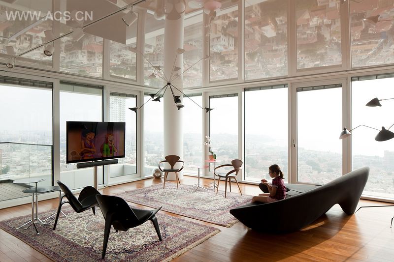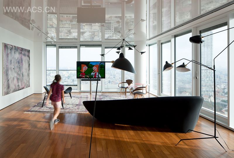 An angle. An "L" shaped volume positioned slightly higher than ground level about 80 meters above in a tower facing south-west of Tel Aviv, visually reaching like a proof of joint the sinuous coastline of the Jaffa port, only a few km away.