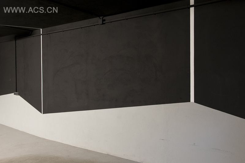 On the kitchen furniture was written in Frenchwith vinyl lettering ‘I don’t like cooking’, a joke to the Loft’s owner. Round coated l cavities of different sizes were made on the walls to place the bottles. They were designed by Teresa Sapey.