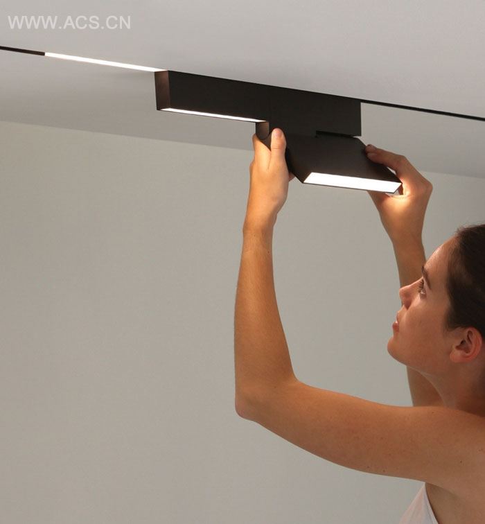 这种光源的力量在于它的长细与不可见。该装置的设计得非常简单,可以在任何地方使用。能够内置。安装在墙上或者悬挂在天花板上。还有一个创新在于可以将多种LED灯具插入其中,并且能够移动。不同的灯具拥有不同的性格和照明质量。有小型的点式聚光灯,还有内置式“in”,以及壁挂式的“out”,柔韧的“knick”。