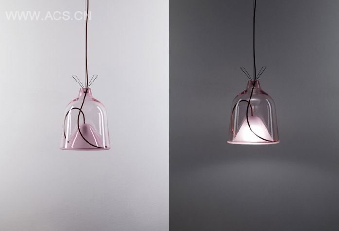 非常晶莹的吊灯,双层玻璃整体吹制,外层为透明玻璃,内层则打磨成为磨砂玻璃。独特,优美