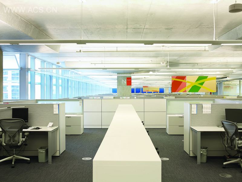Gottschalk+Ash 采用独具创新的电子交互式视频设备作为电梯大厅的导向标识。该设计方案如此成功,以至客户要求G+A从视觉上提升室内环境,使其更大,有冷感,创造出一个具有视觉兴趣和温馨感的诱人空间。