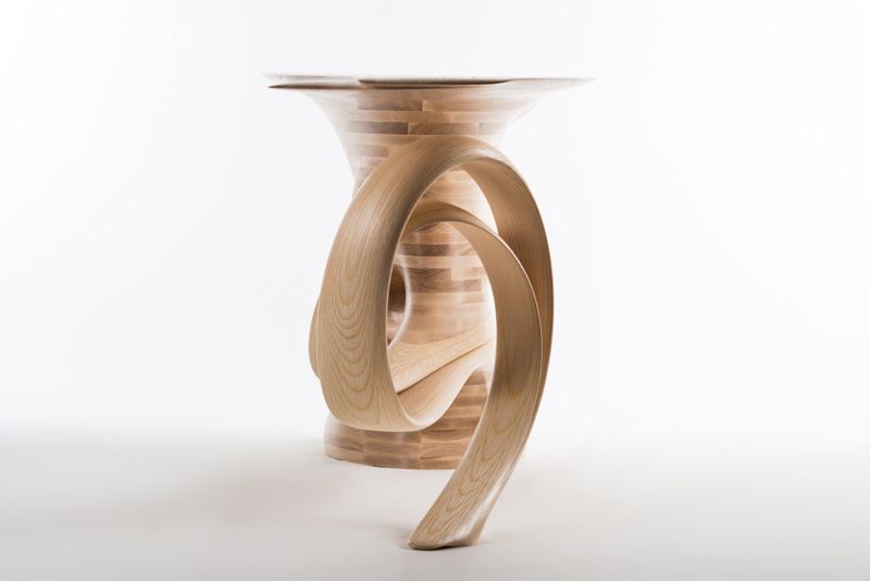 Waiho explores the relationship between user and by inviting interaction through touch. The table is sculpted using a combination of hand carved stack lamination and laminate bending, creating wonderfully tactile shapes and surfaces.
