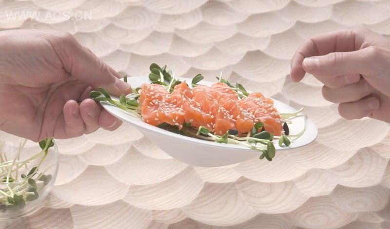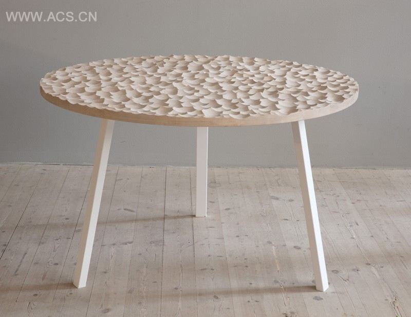 Sofia Almqvist of design studio Kompaniet has created Umami, a carved out wooden table with custom ceramic and glass table top items that fit perfectly into the ‘scoops’ of the table.