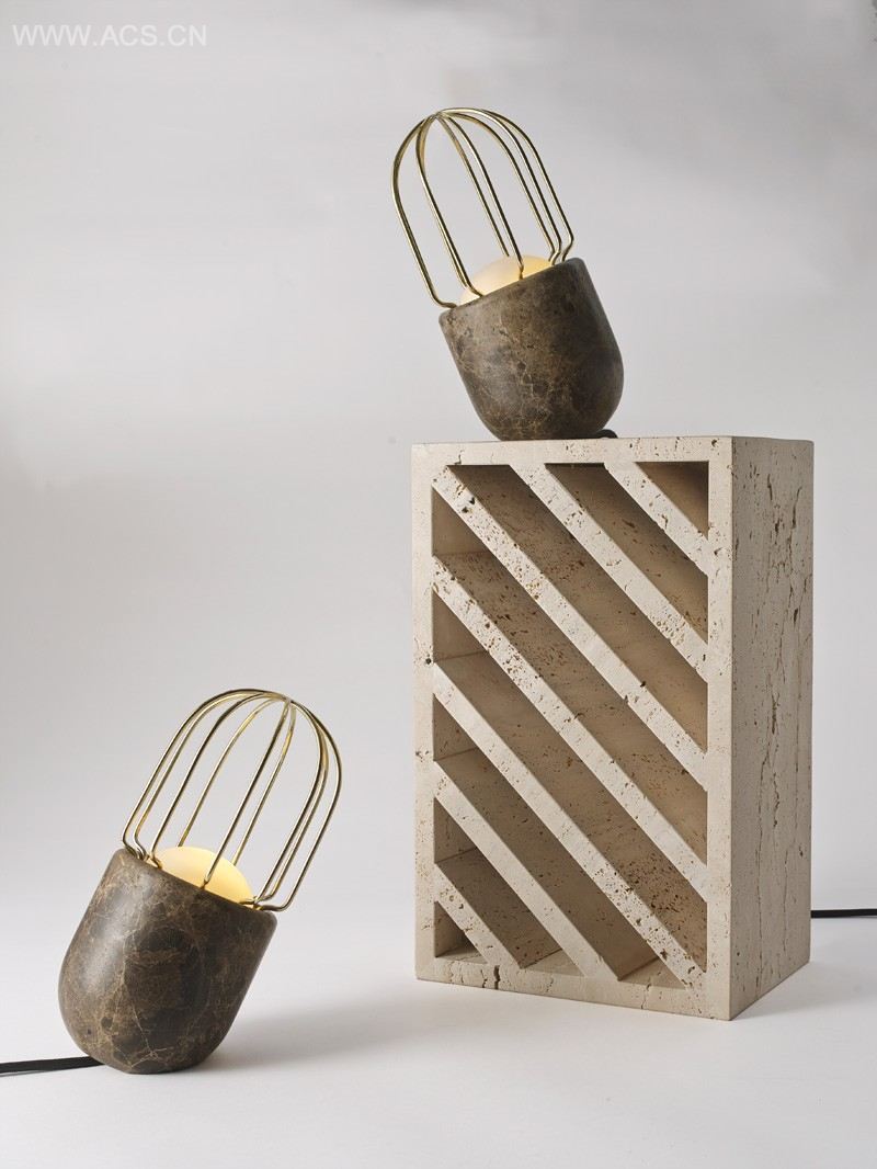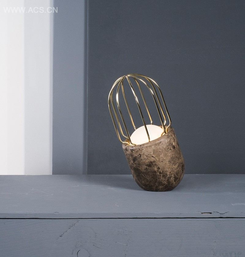 Subtil and sophisticated review of the traditional portable lamp, D/light is an acrobat, a golden cage in search of freedom.D/Light is a luminous nugget. A charmingly ambiguous nomad piece with a sliced marble and a thin brass armature. Each of its rays is an intriguing reflection set.