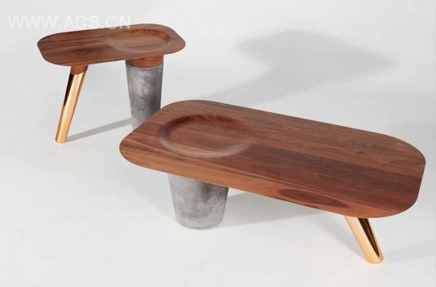 Design studio Astfrei has released their first concept CS1, a coffee table and side table made from Californian walnut, concrete and copper.