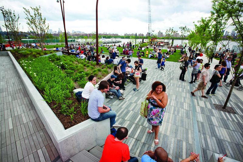 威廉斯堡滨水区已被工业区和遗迹支配了长达一个多世纪的时间, 因而一直没有被开放过。新的区域划分增加了该地区的密度并强调了滨水区的开发。“边缘区”公园将人们联系到水边,也将生态系统与社区结构连成一体。由于景观建设包括新的住宅区和公共滨海公园,设计师们必须克服困难来确保住宅大楼不会阻碍公共通路,也不会变成类似东河和曼克顿这样的景观,但要成为通向河流的入口,并且设有视觉上连接标志性天际线的廊道。