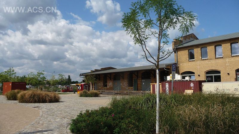前货运站前面的自由空间可以当做多功能场所,比如艺术文化空间、活动场所、游乐场或是宜人的啤酒花园中的会议区。一个配有座椅设施的蜿蜒小路通向建筑物,延伸到公园后面。前院每一边都有人工草坪,草坪上面是一个由100棵日本槐树组成的华丽天蓬。树冠都被剪平,像个屋顶。