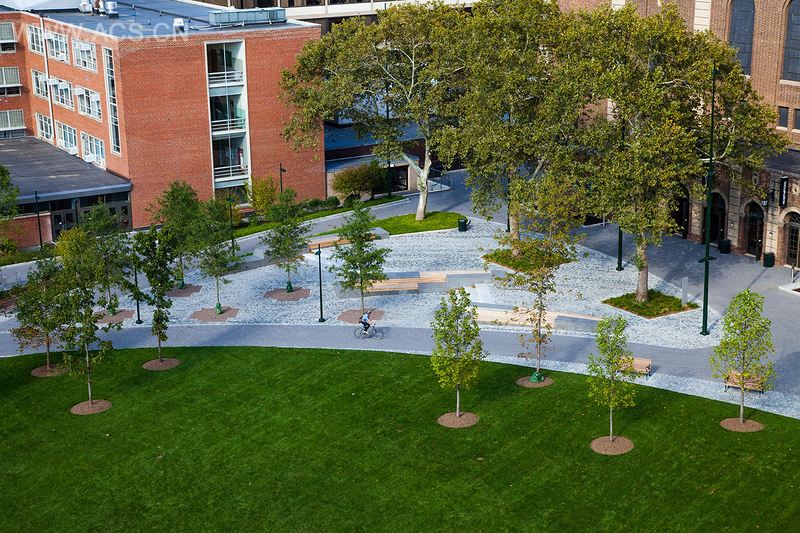 雨水管理由综合景观的雨水管理体系提供,该体系包括运输、收集、过滤和供灌溉再利用的雨水储存。该设计旨在收集并再利用当地95%的雨水。雨水管理设计也考虑到游客的参与,在雨水花园中可以看得见。石坝能够运输雨水,植被和砾石层则收集并过滤雨水。43种不同物种是Piedmont 和Coastal Plain的生态区域的本土植物,产自费城150英里以内的地区。口袋公园是一种可持续性校园的典范。该地的持续监测有利于展示未来的大学景观设计,作为SITES™的试验项目,这个绿色空间也有助于建立国家可持续性景观的指导方针。