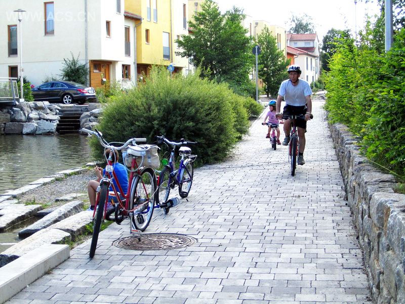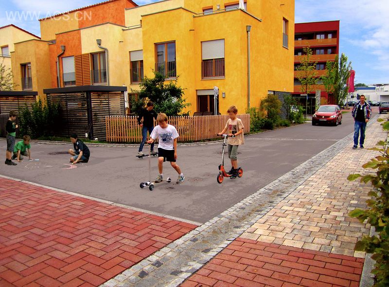 混合的建筑类型,结合地中海地区迷人的色彩理念和符合“花园城市”质量标准的美丽街景,形成了一个拥有凝聚力的社区。水敏感城市设计为此项目提供了一个独特的城市性格。街角的小型广场、空间可以为邻里交谈、孩子们踢球玩耍提供场地。虽然街景专为步行而准备,共享的交通概念同时意味着车辆也完全可以进入该场地,而地下车库、停车棚,以及整齐地隐藏于其种植基质能够承担负重的花园之间的停车场地,为车辆的停放提供了多样的选择。大面积植物种植所体现出的自然形式、作为项目开发主体的迷人湖面,以及经修复并被整合纳入滞留湿地体系、拥有休闲小径和游乐场地的临近溪流,共同作用将房屋建造的密度感柔化。
