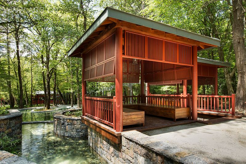 该设计使用木材、鹅卵石、天然的石头和岩石作为建筑及日式种植的材料。池塘作为水景,其风格与土耳其园林一样;具体和自然。木桥和踏石用来方便游客渡过水域。水中央是红色的木质凉亭。宝塔是作为传统的日式建筑而设计的。宝塔旁边是禅宗园林,以天然岩石、鹅卵石和踏石为材料,里面种植欧洲荚蒾、盆栽和苔藓。